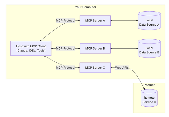 - MCP server:對外提供特定服務(如資料查詢、下單、轉帳等),並遵循 MCP 規範與 host 互動。